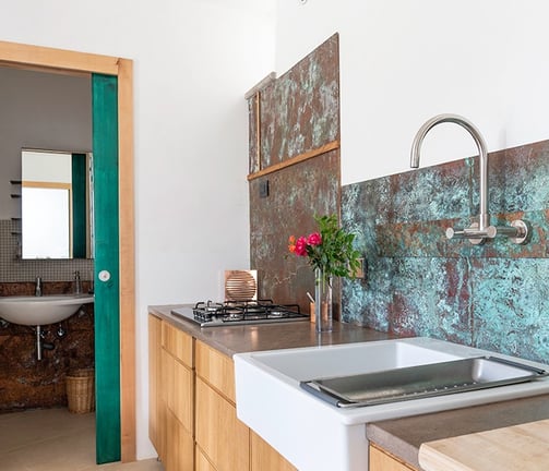 Die Familie teilt nicht nur die Liebe zur Landwirtschaft, sondern auch zur Architektur. Die Gäste können in individuell gestalteten Apartments mit Kochmöglichkeiten und eigenem Bad übernachten. Ein gemeinsamer Garten bietet Platz zum Entspannen im Freien.